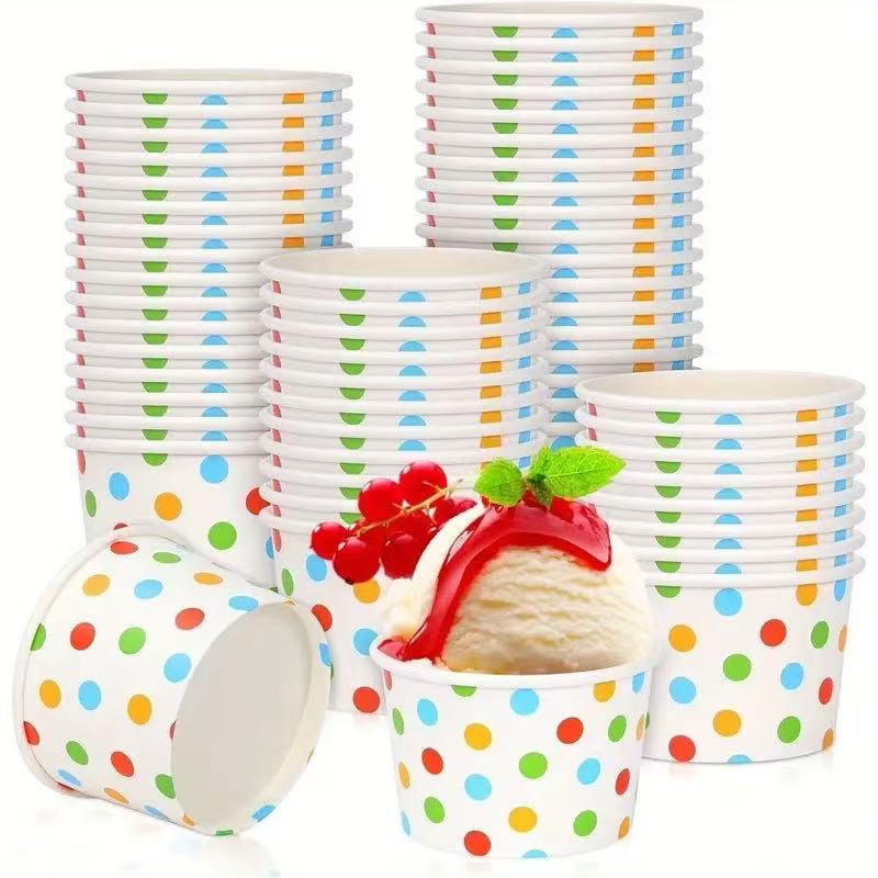 • Versatile Application: our ice cream paper cups offer more than just a haven for your ice cream delights; they are suitable for holding food from frozen yogurt to warm soups, or from cakes and cookies to popcorn, these versatile bowls cater to a multitude of snacking needs. Ideal for both casual and formal gatherings alike, they simplify serving and enhance the enjoyment of an assortment of desserts and snacks